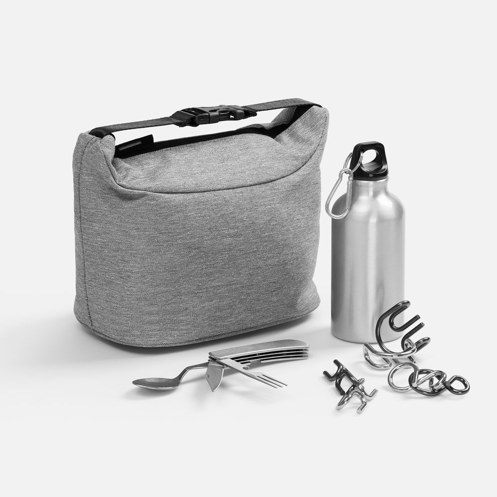 Обеденный перерыв или импровизированный пикник? Набор BiteLight справится с любым сценарием! Нержавеющий столовый прибор выручит при желании перекусить вне дома или офиса, термосумка сохранит еду теплой, а прочная алюминиевая бутылка — напиток горячим. Все необходимое всегда под рукой. А чтобы перезагрузить голову, добавлена увлекательная головоломка — источник свежих идей.Емкость бутылки 400 мл.