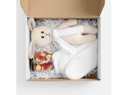 Порой так приятно снова почувствовать себя ненадолго ребенком — ощутить ту особенную безмятежность и способность радоваться приятным мелочам. А может, поделиться этой чудесной беззаботностью с другими — как с детьми, так и с такими же взрослыми.Белые носки, милый плюшевый заяц и мармелад с нежным вкусом — сочетание, перед которым будет трудно устоять любому. Зайчик с трогательными ушами непременно вызовет улыбку, а его симпатичный шарф станет еще более стильной деталью и главным акцентом всего набора после персонализации. Kidult. Детство всегда рядом.