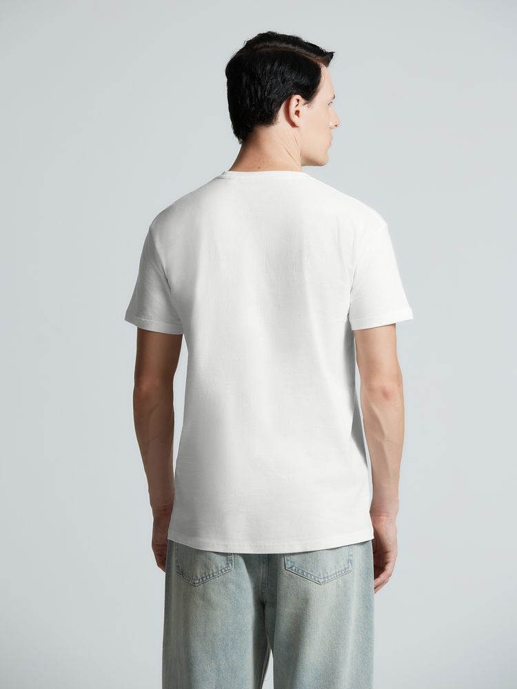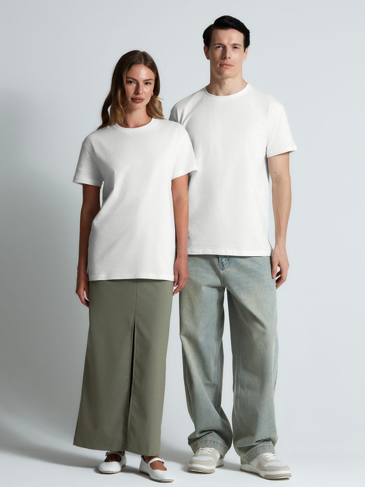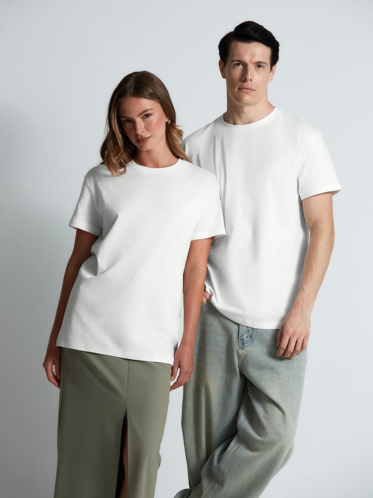 Базовая футболка унисекс прямого силуэта без боковых швов (размеры XS–4XL) или с боковыми швами (размеры 5XL–6XL).Высококачественное полотно джерси (кулирная гладь), которое прошло активное крашение, предварительную термоусадку и обработку энзимамиИзделие долго сохраняет свою форму, не деформируется и не выцветает при стиркеИдеально подходит для всевозможных видов нанесения благодаря использованию особо гладкой гребенной пряжиКруглая горловина выполнена резинкой 1x1 с добавлением эластанаВорот усилен укрепляющей тесьмойПлечевые швы изнутри усилены силиконовой тесьмойНа горловине только сатиновый ярлык с указанием размера, который не мешает нанесению или кастомизацииНейтральный белый цвет без оттенка.