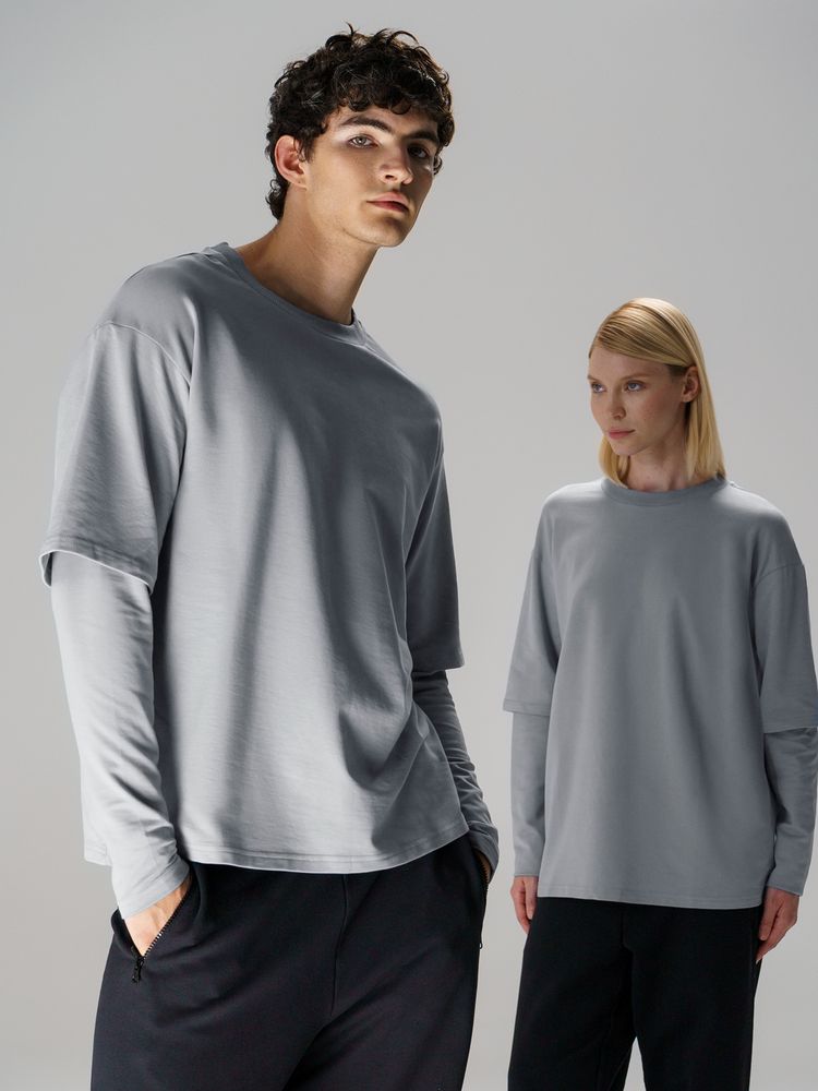 Футболка оверсайз с двойным рукавом Kosmos, светло-серая