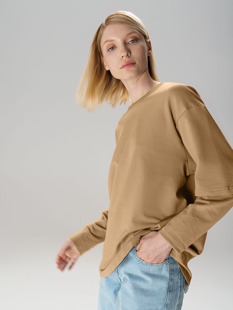 Футболка оверсайз с двойным рукавом Kosmos, бежевая