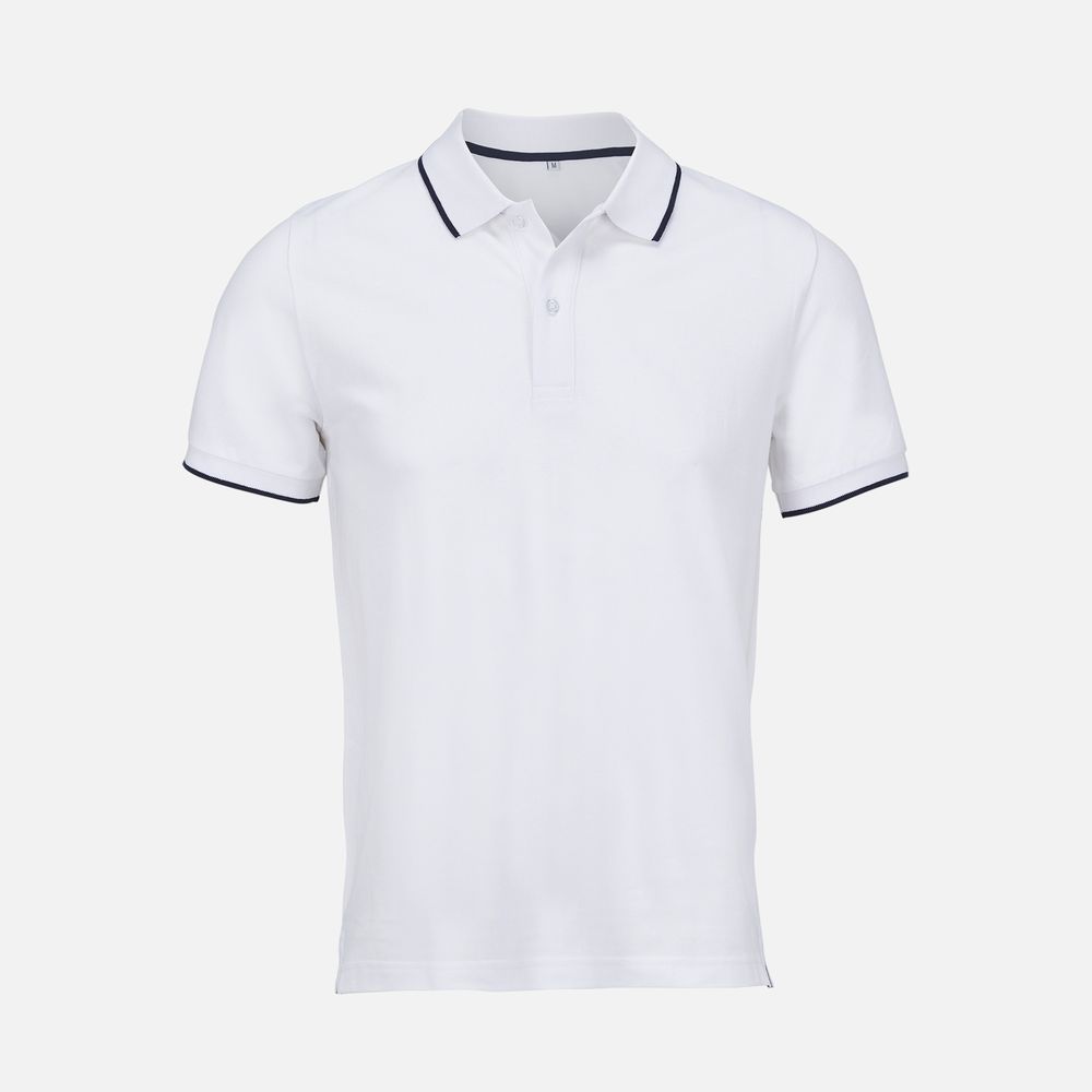 Рубашка поло средней плотности прямого кроя с контрастными деталями. Подойдет как мужчинам, так и женщинам.Манжеты и воротник выполнены резинкой 2x2Контрастные полоски по краю на воротнике и на манжетахПланка с 2 перламутровыми пуговицами в тон изделияКонтрастная укрепляющая тесьма по вороту изделия и по плечевым швамБоковые разрезы по низу изделия для свободы движенияЗапасная пуговица на внутренней боковой строчкеОтрывной ярлык в горловине