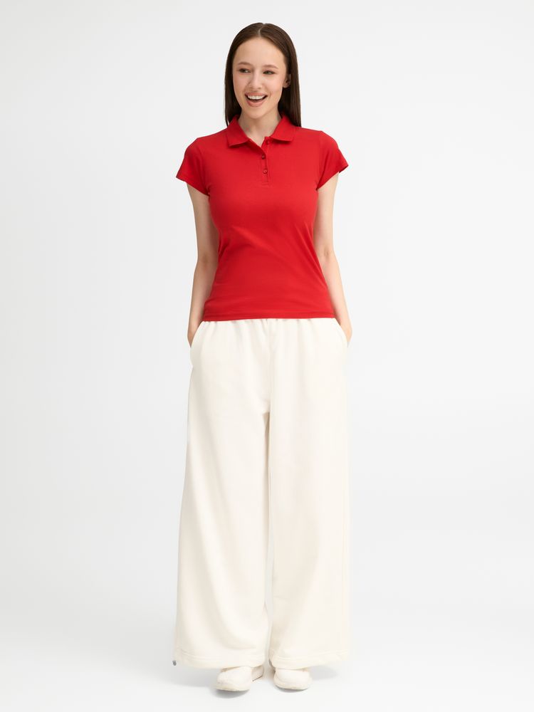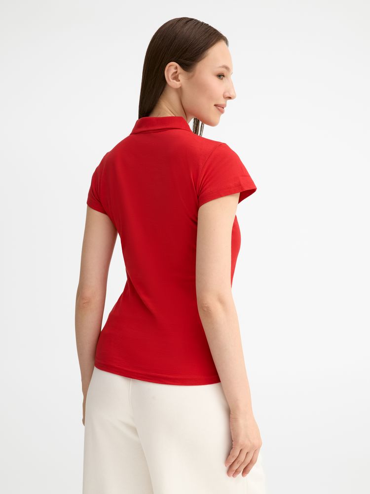 Базовая женская рубашка поло приталенного силуэта. Выполнена из кулирной глади.Планка с тремя пуговицами тон в тонУкрепляющая тесьма по вороту резинки 1х1Запасная пуговица на внутренней боковой строчке изделияДвойная строчка по низу изделия