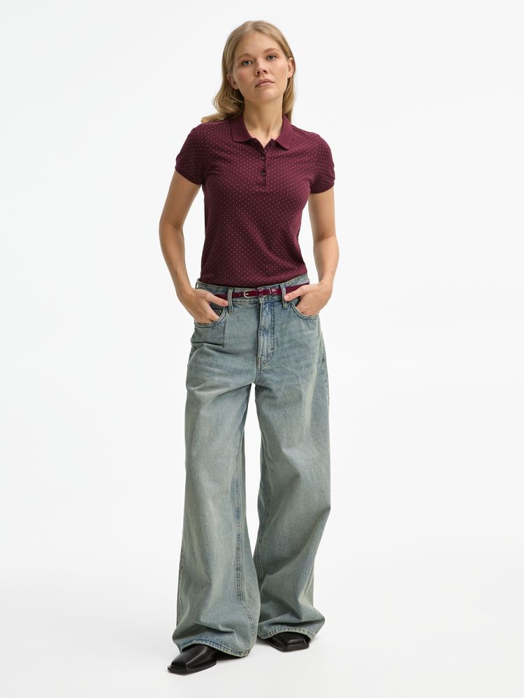 Рубашка поло приталенного силуэта с рисунком в точку.Кроеная (с боковыми швами) рубашка поло с печатным рисунком Планка с 3 пуговицами тон в тонВоротник с укрепляющей тесьмойМанжеты в рубчикБоковые разрезы снизуКонтрастная полоса по внутренней стороне воротника