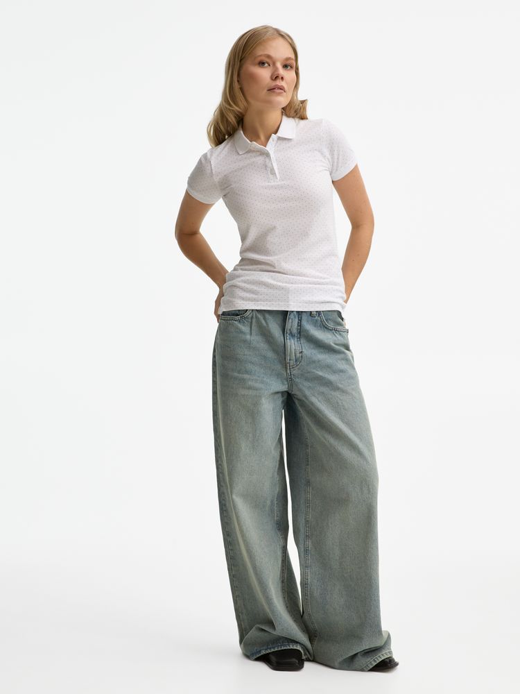 Рубашка поло приталенного силуэта с рисунком в точку.Кроеная (с боковыми швами) рубашка поло с печатным рисунком Планка с 3 пуговицами тон в тонВоротник с укрепляющей тесьмойМанжеты в рубчикБоковые разрезы снизуКонтрастная полоса по внутренней стороне воротника