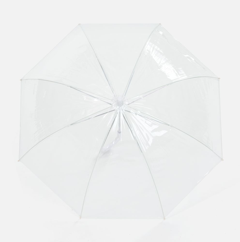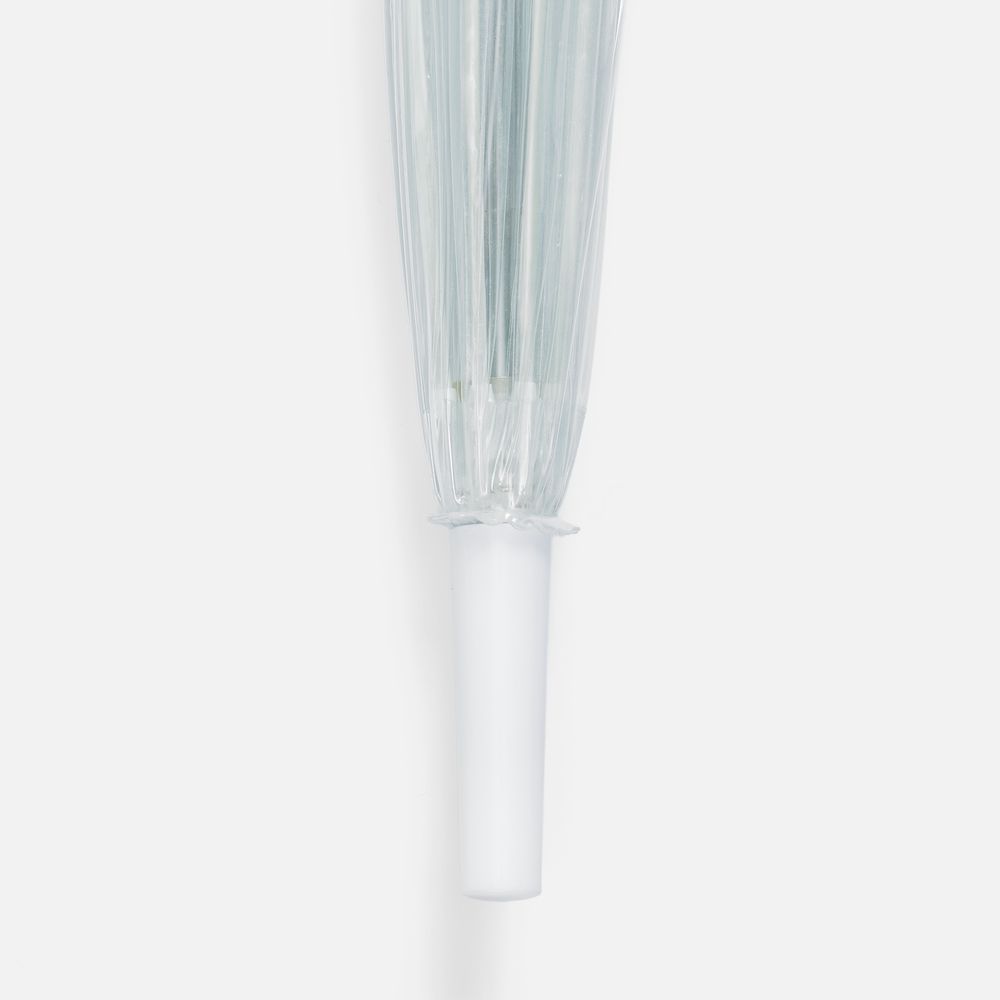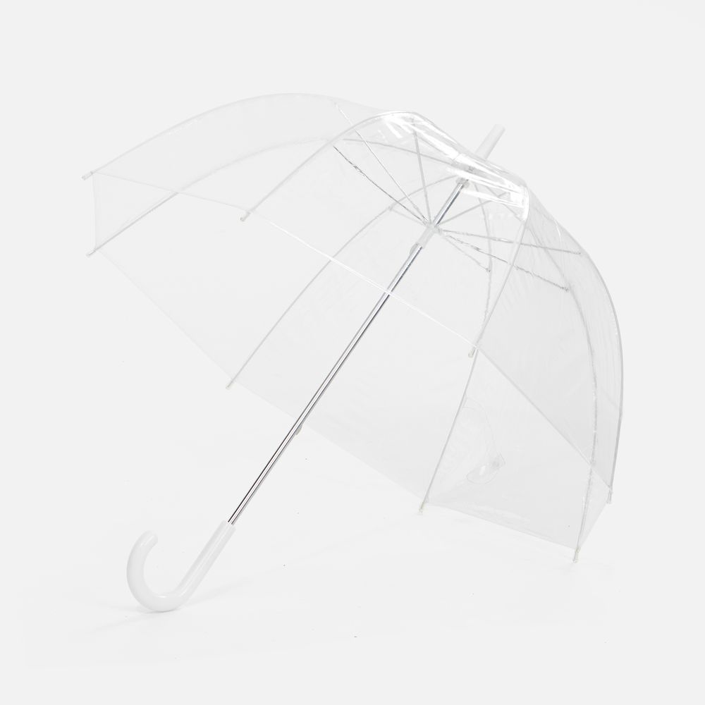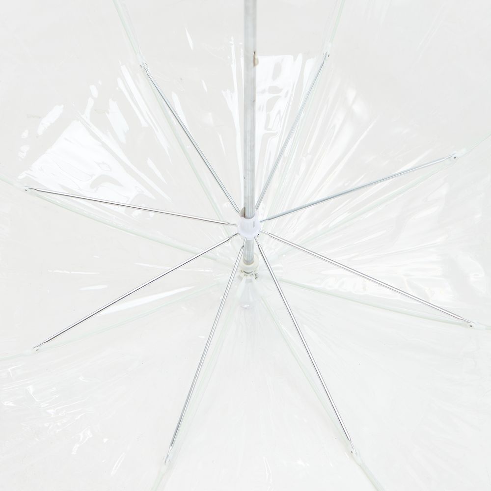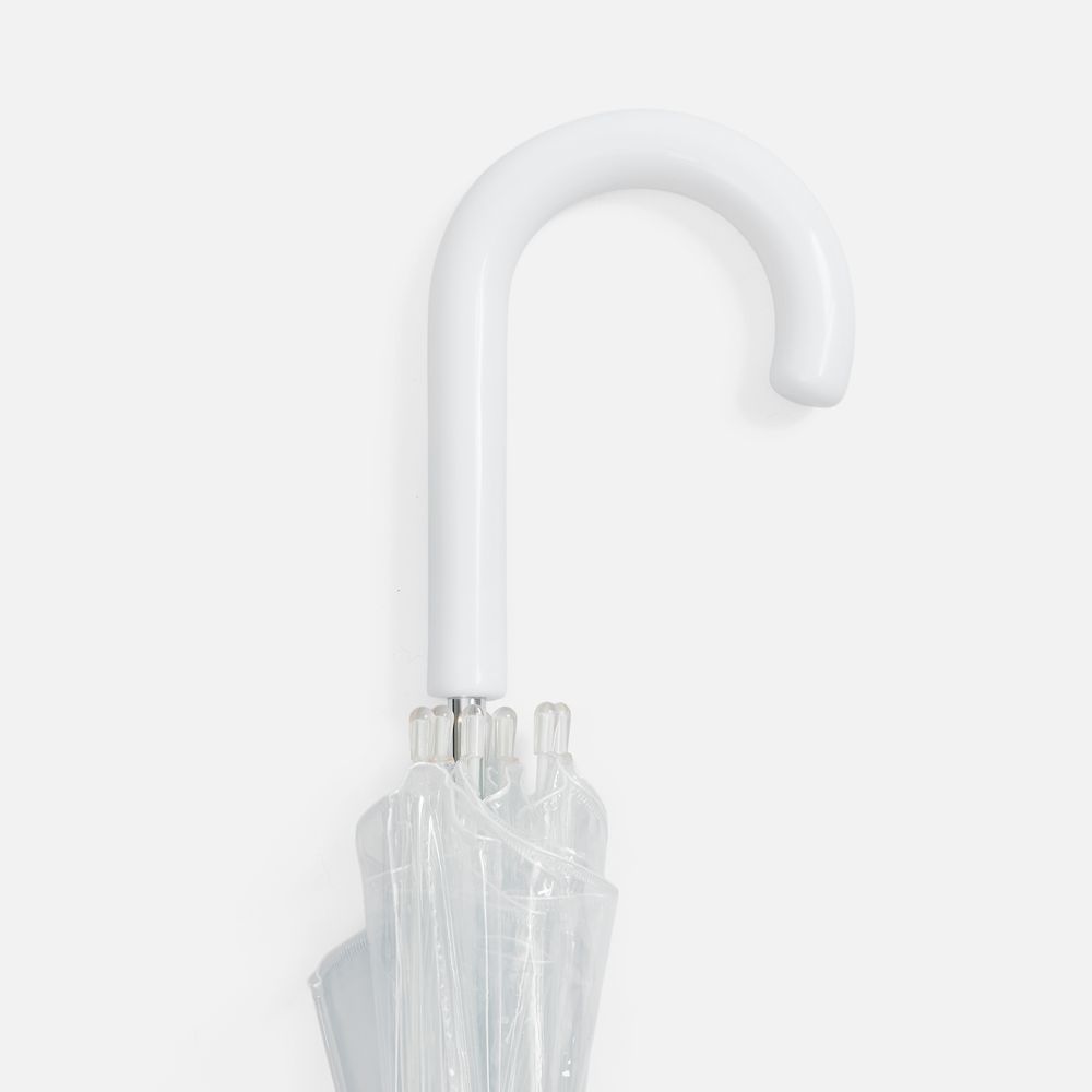 Прозрачный зонт-трость Clear — это стильный и практичный аксессуар, который защищает от дождя, не скрывая окружающий вид. Купол зонта покрыт тальком для предотвращения склеивания материала. Перед первым использованием протрите зонт сухой тканью. При полном удалении талька материал купола может склеиться. В этом случае расклейте его, не раскрывая зонта, и лишь затем раскройте зонт. Мыть зонт следует прохладной водой, сушить вдали от источников тепла. Если водой удалить тальк не удается, попробуйте протереть его спиртом.Механический зонт-трость, 8 спицБелая рамаПоставляется без чехла